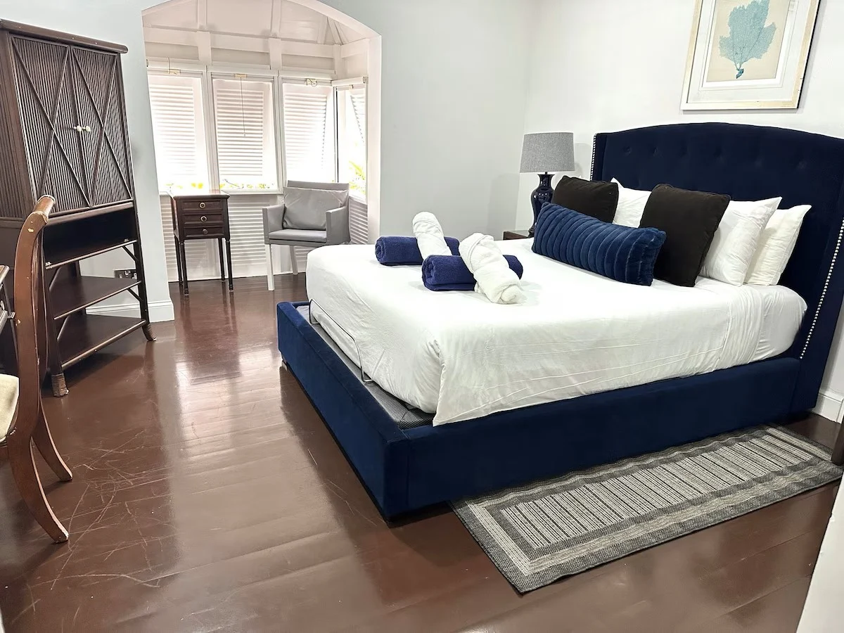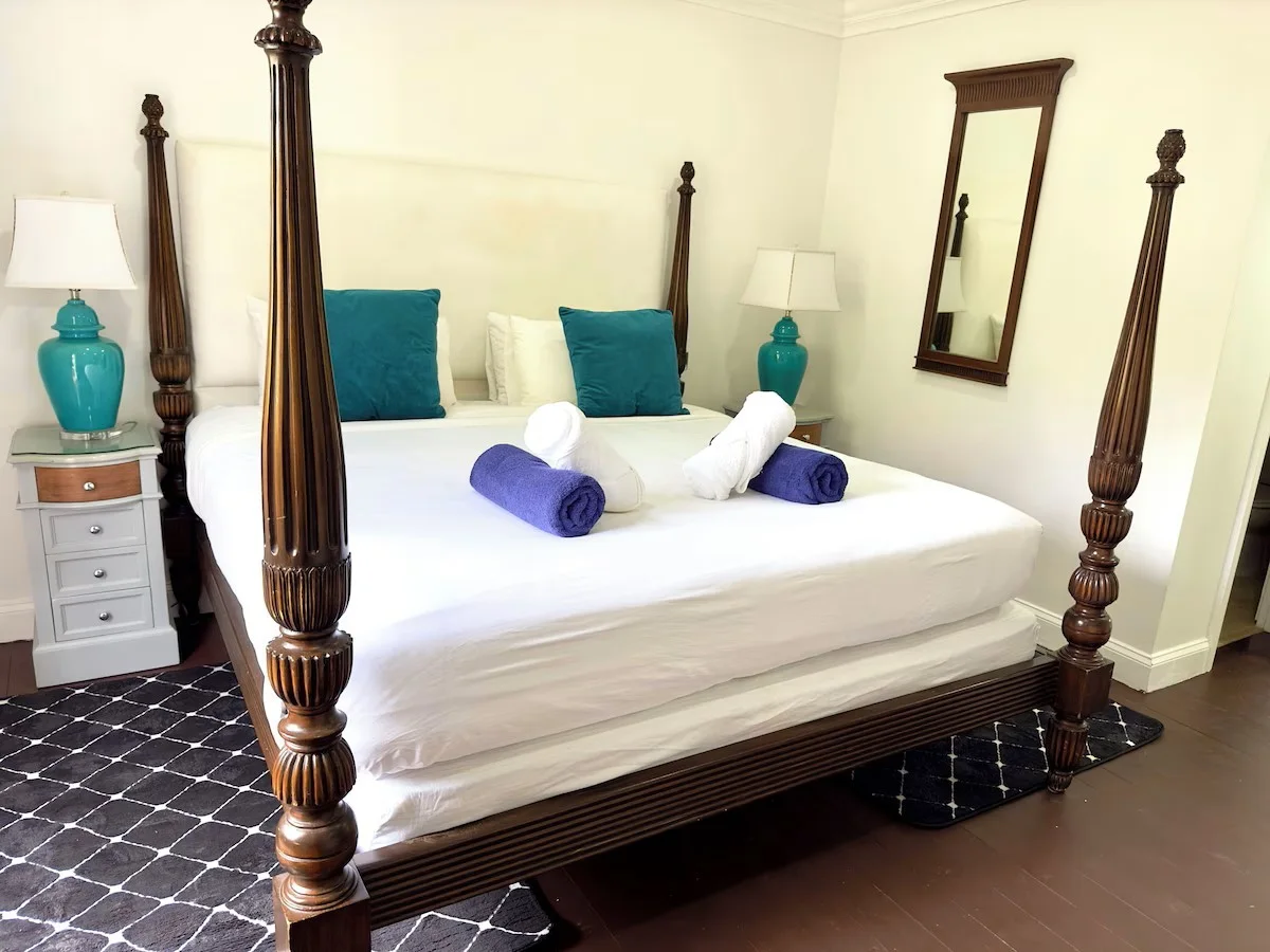 This fully air-conditioned, fully furnished 2-bedroom ground-floor Cap Cove Condo 81 is located in the gated community of Cap Cove Resort – a beachfront resort in Cas en Bas, Gros Islet, St. Lucia. Nestled on the northeast coast near the upcoming Cabot Point Golf Course and the Sandals Golf Course, this condo offers two bedrooms, of which the master bedroom has a terrace. Both bedrooms have ensuite bathrooms with showers, and hardwood floors, and are fitted with wardrobes.. The living room, which is bright and tastefully decorated is fully air conditioned. The sliding glass doors give a view of the patio with a table for Al fresco dining. Surrounded by flowers, birdsong, and sea air, the patio is the perfect place to enjoy breakfast or an evening meal. The communal pool is 30 seconds away! The condo is private, so you can’t be seen by others but you’re close enough to walk to the pool. The kitchen has a dishwasher, washing machine, electric oven, hob, built-in microwave and fridge freezer. The resort provides amenities such as a fitness center, a large communal pool, concierge services, a restaurant, a pool bar, 24-hour security, and private parking, and the unit has dual voltage. The HOA fee for this 2-bed is US$895 per month and includes lighting, cleaning of common areas, refuse collection, maintenance of the roof, external painting of the building, security, water, and cleaning of the communal pool. Building insurance is approximately US$1157.22 annually. This unit is income-producing with rates from USD $190-$250 per night.